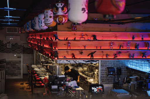 Kaiju in DC serves authentic Japanese ramen in a relaxed atmosphere, complemented by a speakeasy vibe, creative cocktails, and live DJ entertainment on weekends.